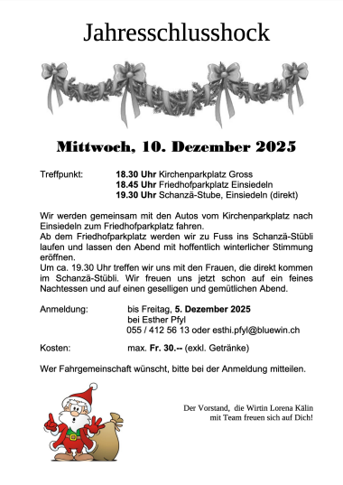Jahresschlusshock Zeit/ Treffpunkt angepassst